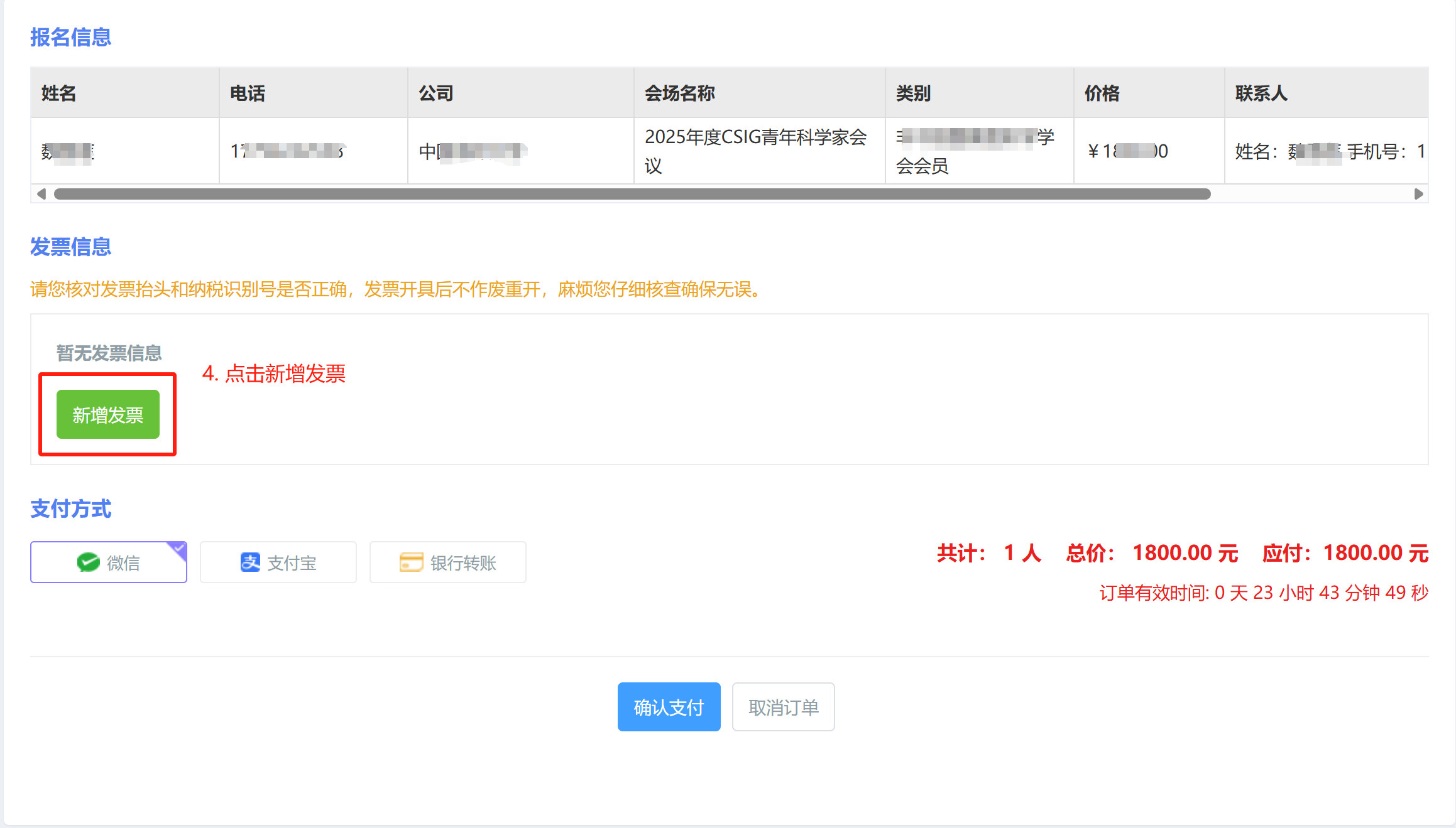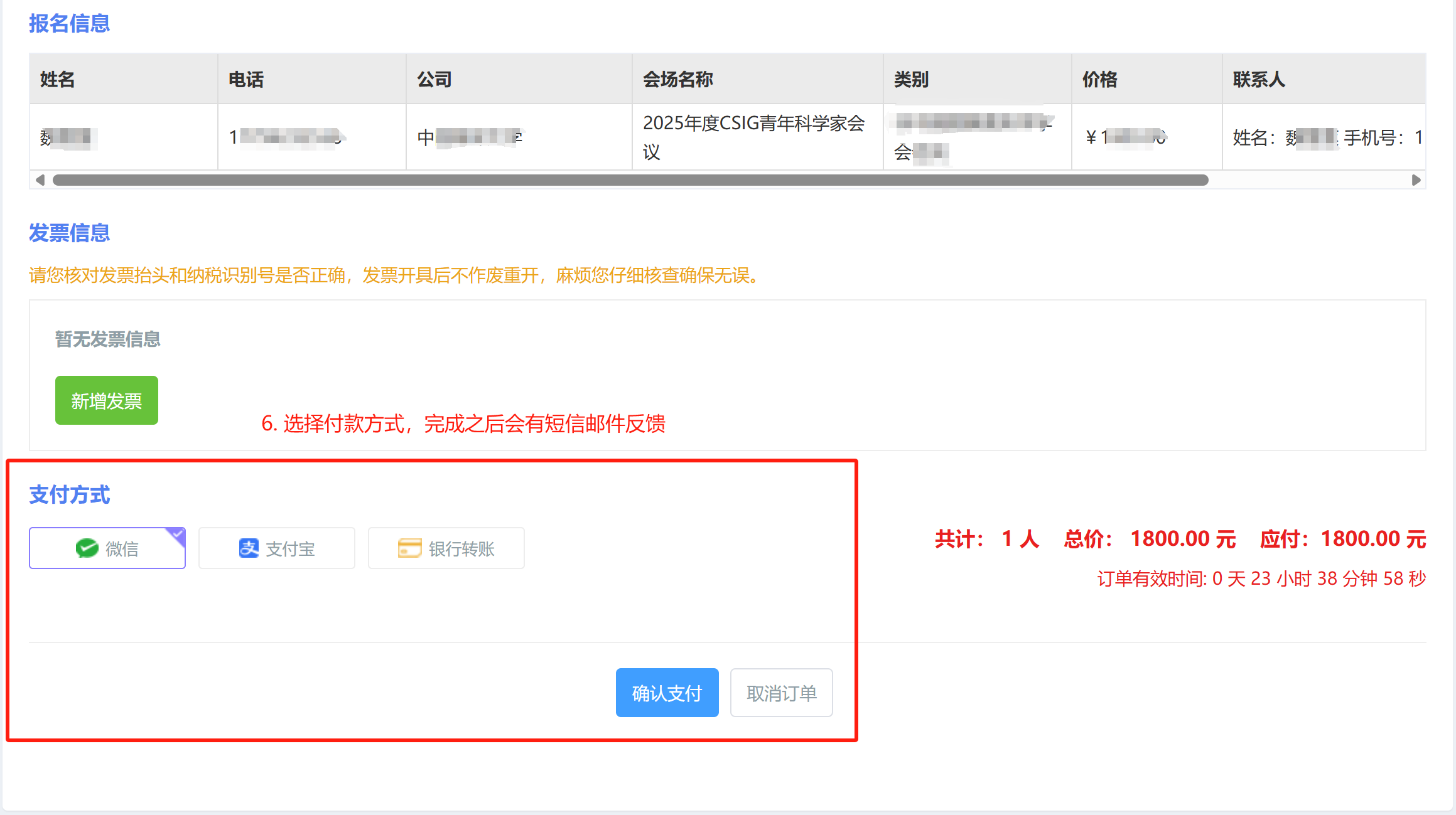 5. 选择支付方式(支付宝、微信、银行转账)进行付款,付款成功后,您会收到反馈短信及邮件。支付成功后,注册即完成。